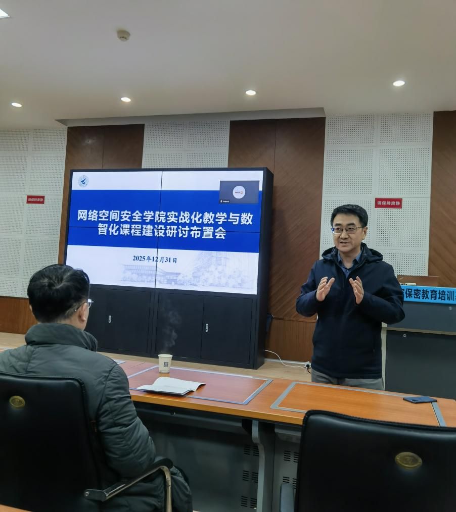 将依托校园网教学靶场平台,全面推进现有课程的数字化、智能化升级,打造一批对接国家网络空间安全战略、契合新工科建设要求的一流课程。他要求全体教师以此为契机,全面梳理所授课程,主动对接前沿技术与实战需求,积极参与课程资源升级与教学模式创新,共同打造一批具有高阶性、创新性和挑战度的优质课程。