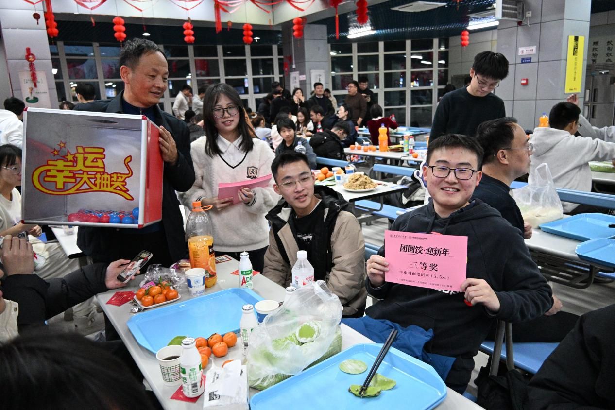 领导班子和师生代表齐聚一堂,在欢声笑语中同包团圆味。