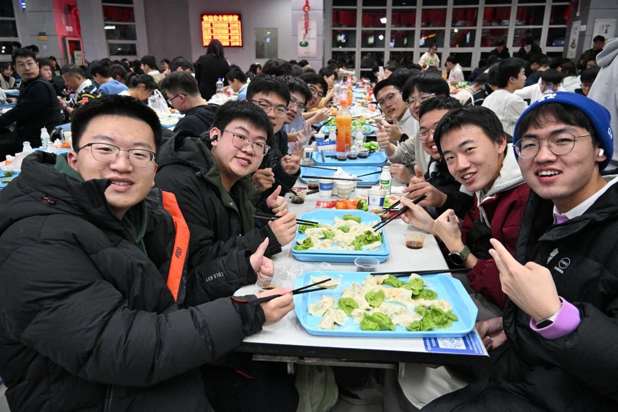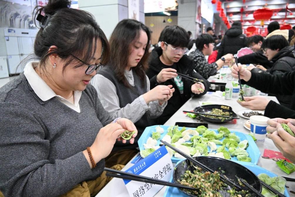 活动现场暖意融融,师生们围坐一桌,分工协作、各展身手,形态各异的饺子在欢声笑语中逐渐堆满餐盘。大家一边包饺子,一边畅谈学业生活,分享过往趣事与新年期许,热腾腾的蒸汽氤氲着团圆的气息,拉近了师生间的距离。偷拍视频