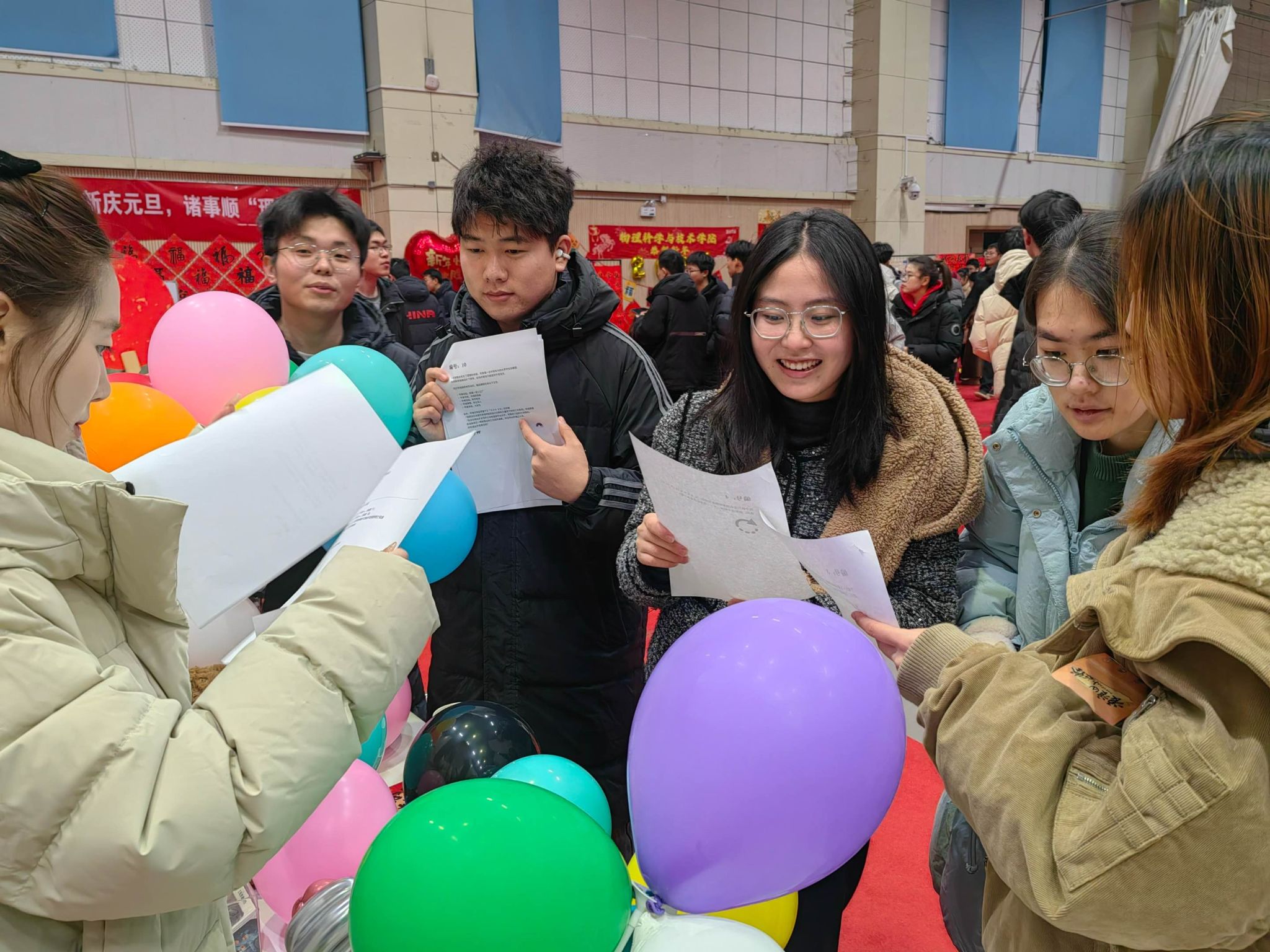 “气球制作”与“祝福贺卡”区:一只只由气球捆扎而成的小狗在巧手中诞生,童趣十足。另一侧,同学们提笔写下新年的美好祝愿,把对未来的期许与温暖的祝福留在字里行间,现场温馨而治愈。