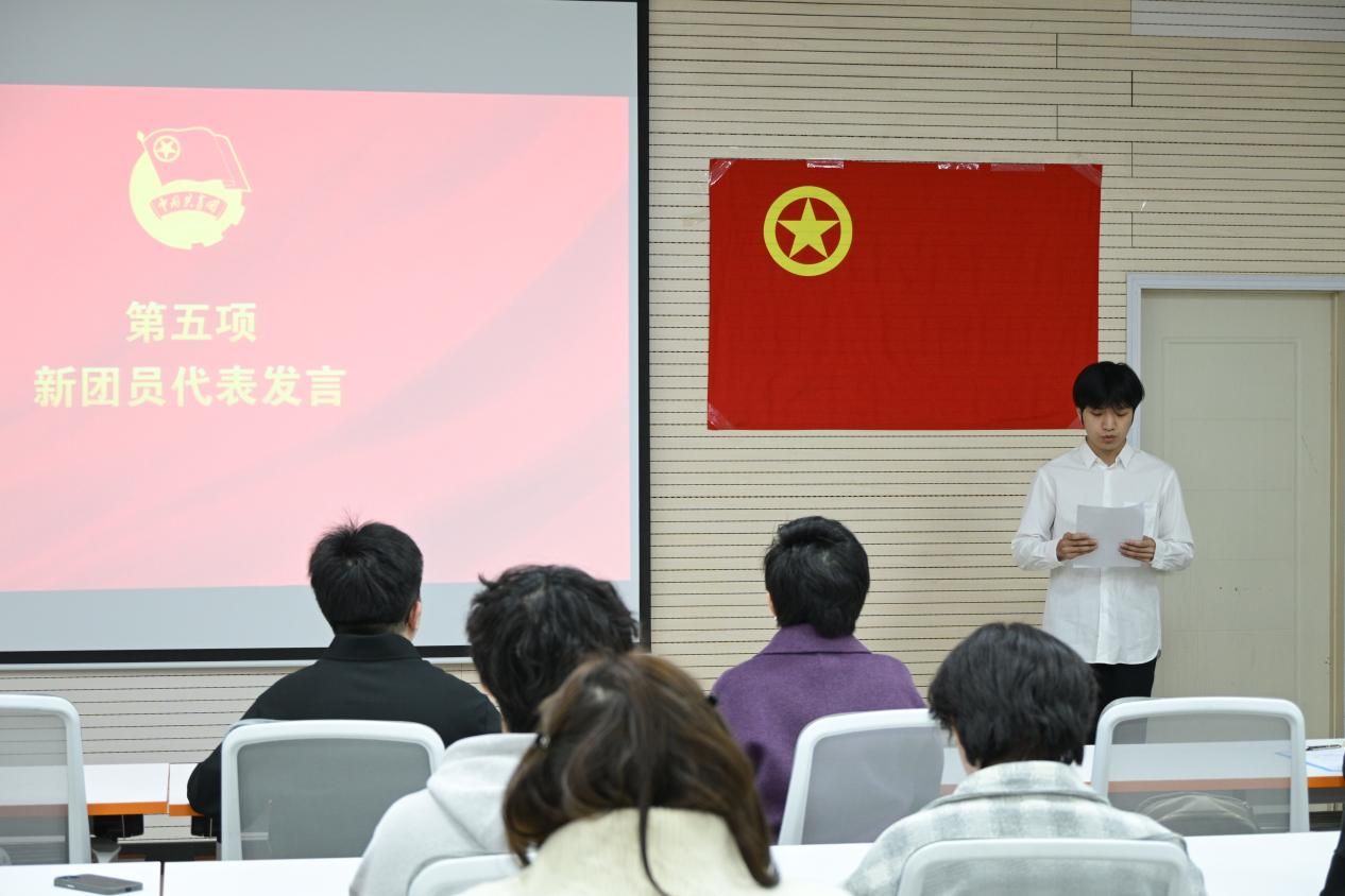 优秀团员代表徐心悦结合自身参加团干部素质能力大赛的经历,鼓励新团员永葆学习热忱,积极投身实践锻炼,努力成长为专业精、系统强、重实践、能担当的总师型人才,在强国建设新征程上书写网安青年的青春答卷。
