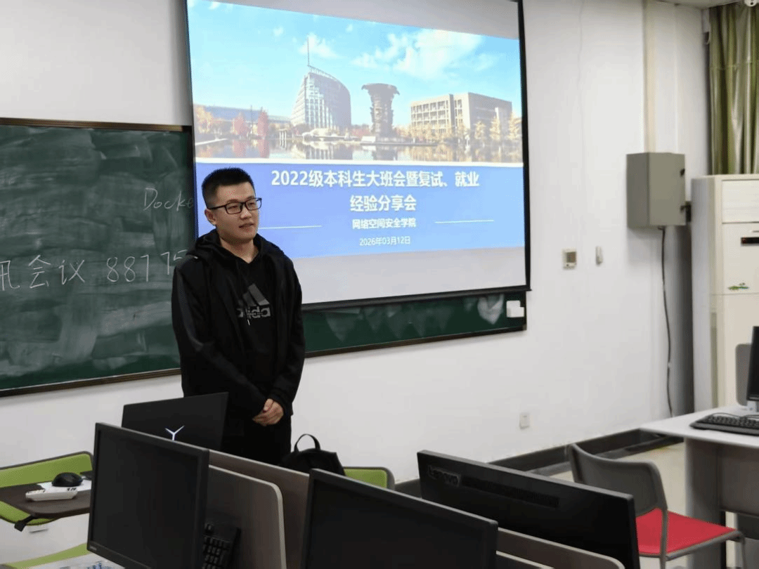 “红色基因 蓝色情怀”系列实践活动,2025年暑期他牵头组织延安、南京、南昌多地社会实践,赴延安宝塔区二中对接当地公安局开展反诈宣讲,让网安专业知识走进校园;2026年3月,他积极参与“网小安”走进南山幼儿园志愿服务活动,以趣味形式传递安全与环保理念,同时加入朋辈领航站,为同学们开展密码学补考答疑辅导,用专业能力助力朋辈学业提升。从红色实践一线到校园朋辈帮扶,他始终以行动诠释新时代网安青年的责任与担当,让志愿之光在服务中闪耀。