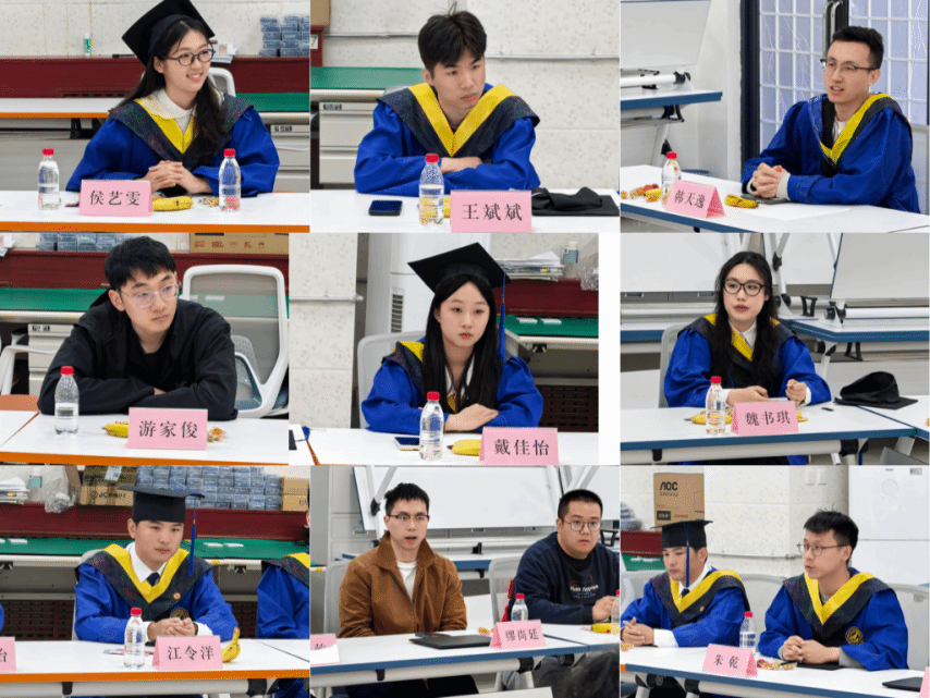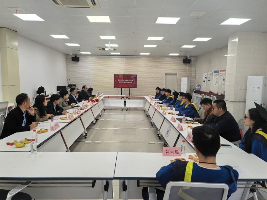 办公室主任胡伟等院领导,组织员刘慧,学工主管方雪,辅导员王昌昌与研究生毕业生代表齐聚一堂,共话成长点滴,共商发展良策。座谈会由杜瑶主持。