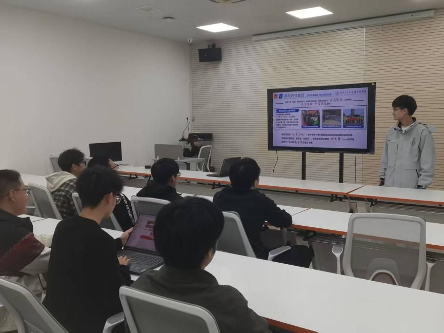 活动中,工大青年宣讲团讲师唐子皓首先围绕“十五五”规划建议中“加强党建引领基层治理和基层政权建设”的重要论述进行学习分享。他结合专业特色,为同学们介绍了青年参与网络治理的理论方向与实践路径。
