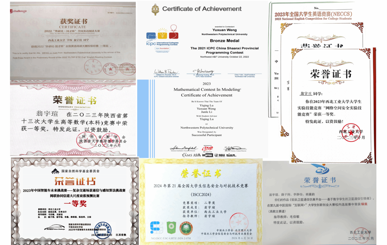 除了学习专业知识,翁宇瑄还积极投身网络安全、程序设计以及各类学科竞赛,获得过中国智能车未来挑战赛国家级一等奖、全国大偷拍视频-偷拍性爱-偷拍做爱英语竞赛国家级二等奖、陕西省大偷拍视频-偷拍性爱-偷拍做爱高等数学竞赛一等奖、陕西省大偷拍视频-偷拍性爱-偷拍做爱程序设计竞赛铜牌等主要奖项。