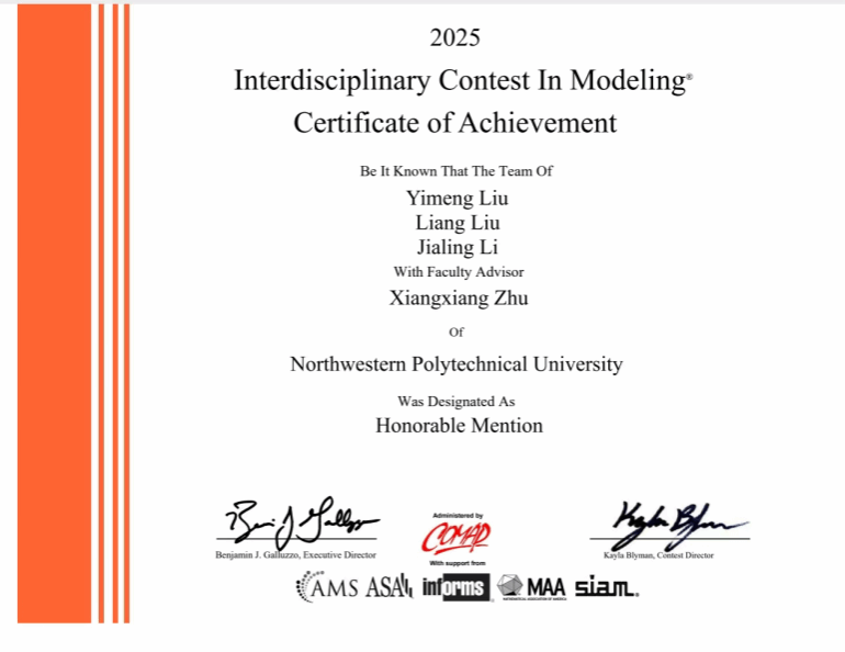 科研竞赛中他不畏困难,自主承担了数学建模美赛的编程工作,首次尝试就获得了H奖的成绩。在数学建模国赛中,获得了省级二等奖的荣誉。他主持了基于图注意力神经网络的社交机器人检测研究的省级大偷拍视频-偷拍性爱-偷拍做爱创新创业训练项目,带领队员们与老师积极交流,为网络安全领域社交机器人识别提供新思路。