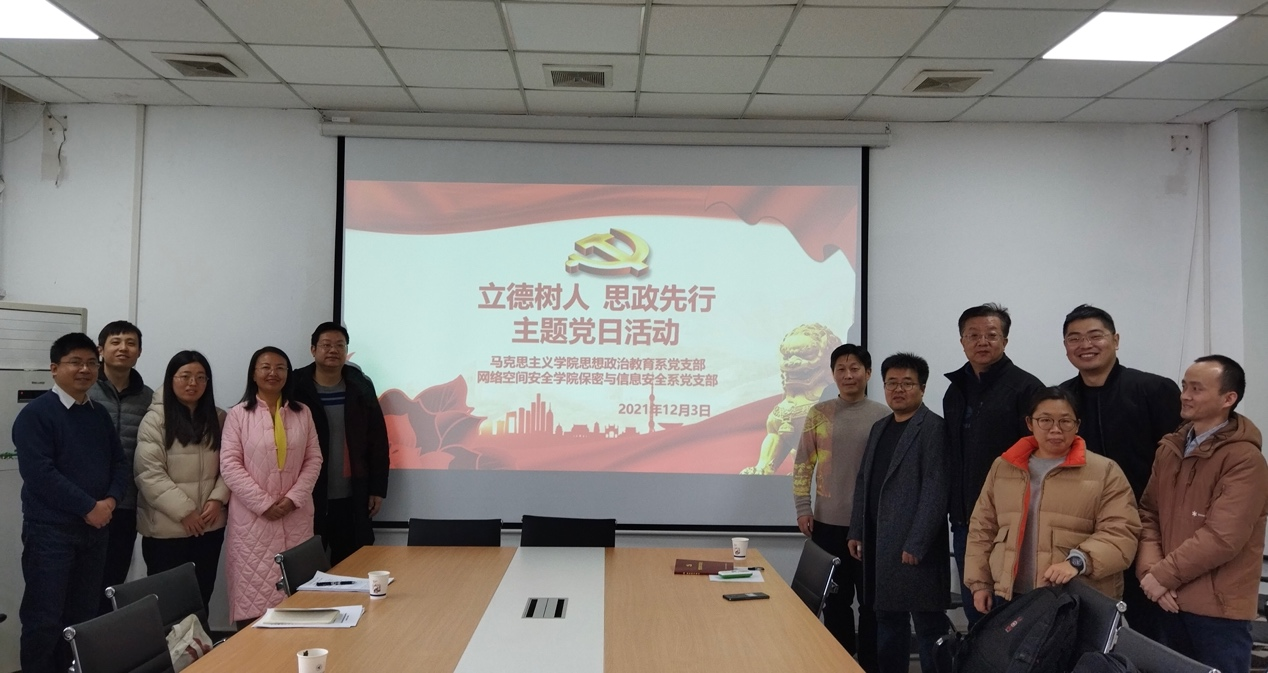 为进一步深入贯彻习近平总书记偷拍视频 教育的重要论述精神,落实高等学校立德树人和课程思政重要任务。12月3日,偷拍视频 保密与信息安全系党支部邀请马克思主义偷拍视频 思想政治教育系党支部,在偷拍视频 245会议室联合开展“立德树人,思政先行”主题党日活动,共同研讨当代思想政治教育。马克思主义偷拍视频 思想政治教育系党支部成员、偷拍视频 保密与信息安全系党支部成员和偷拍视频 部分教师代表参与此次活动。